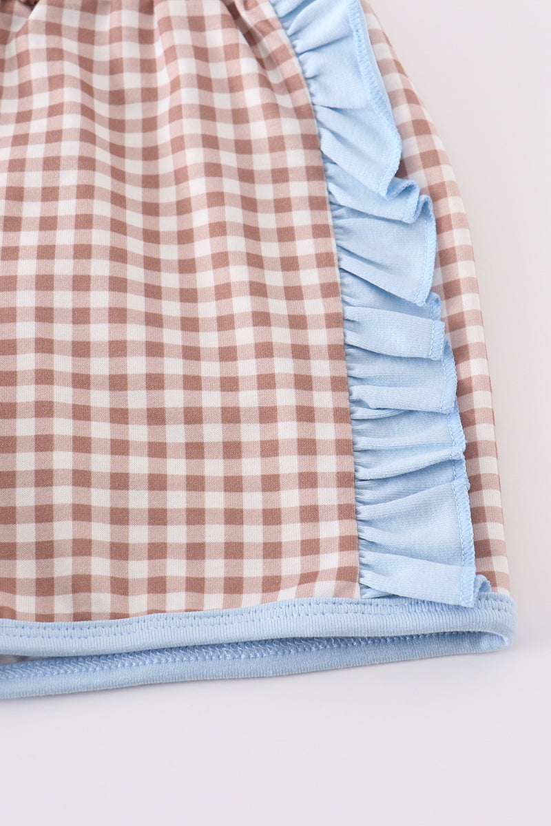 Hit it out of the park with this playful blue baseball applique set! Perfect for adding a sporty touch to any outfit, this set features a unique design that will make you stand out from the crowd. A must-have for any baseball fan. Go team!