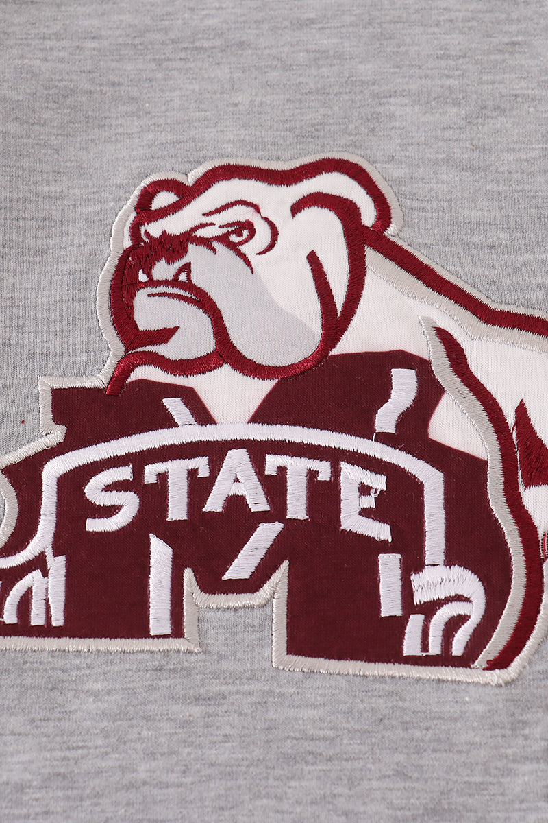 Maroon Mississippi embroidery bow skorts set