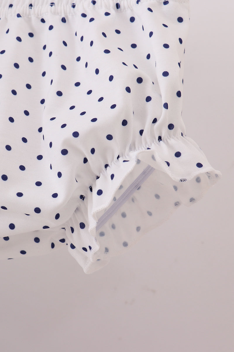 Dress your little one in festive charm with this Navy Nativity Embroidery Ruffle Bloomer Set. Featuring delicate nativity-themed embroidery and playful ruffles, this set combines comfort with adorable holiday spirit. Perfect for celebrating the season with a touch of whimsy and style!